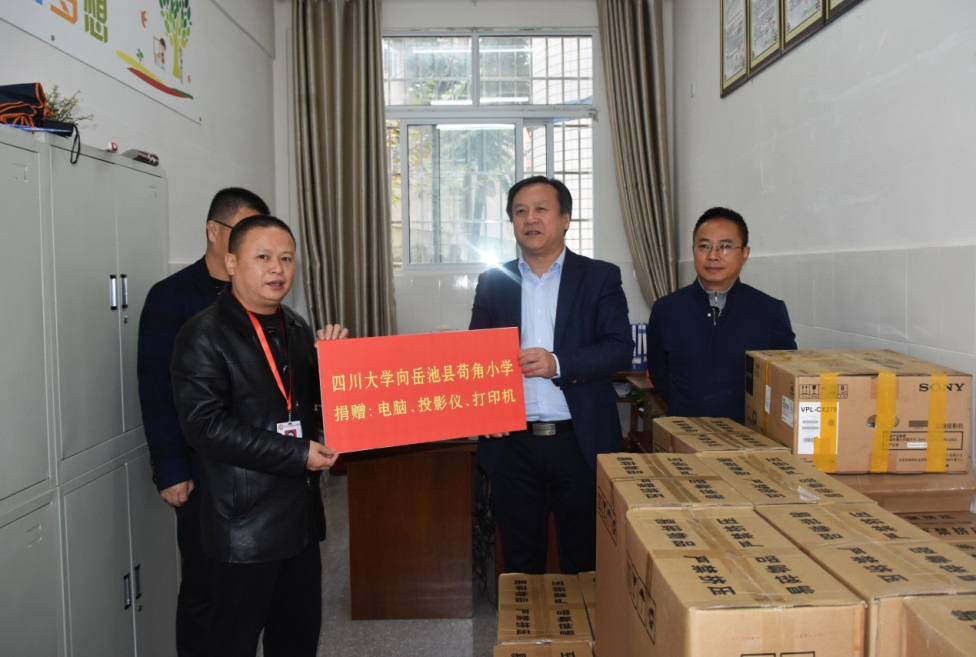 在调研中,许唯临一行首先来到苟角小学,代表伟德国际victor1946捐赠了电脑、打印机等设备,用于支持脱贫攻坚事业,并希望苟角小学要充分发挥传统的书法育人优势,对接好川大这个平台,积极培育团队力量,推动公司书法育人事业再上新台阶。