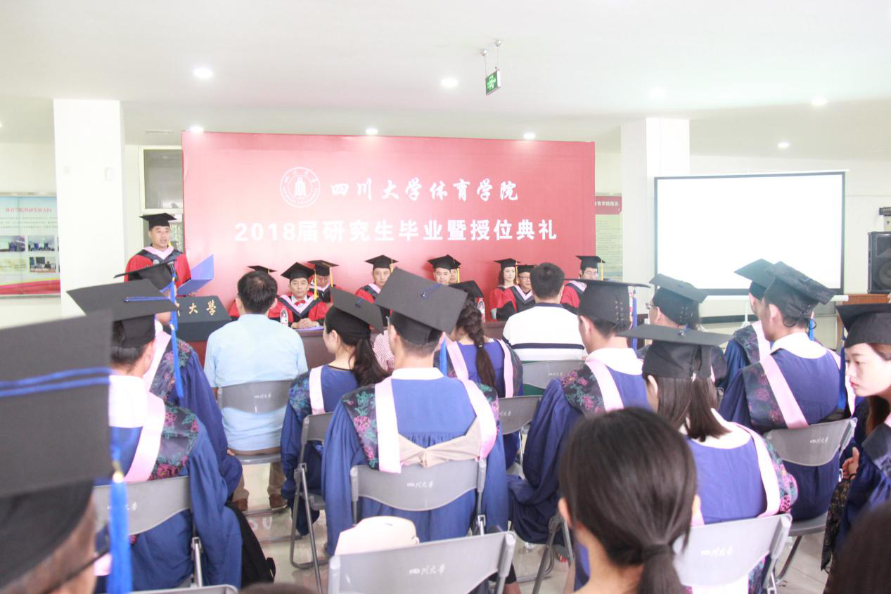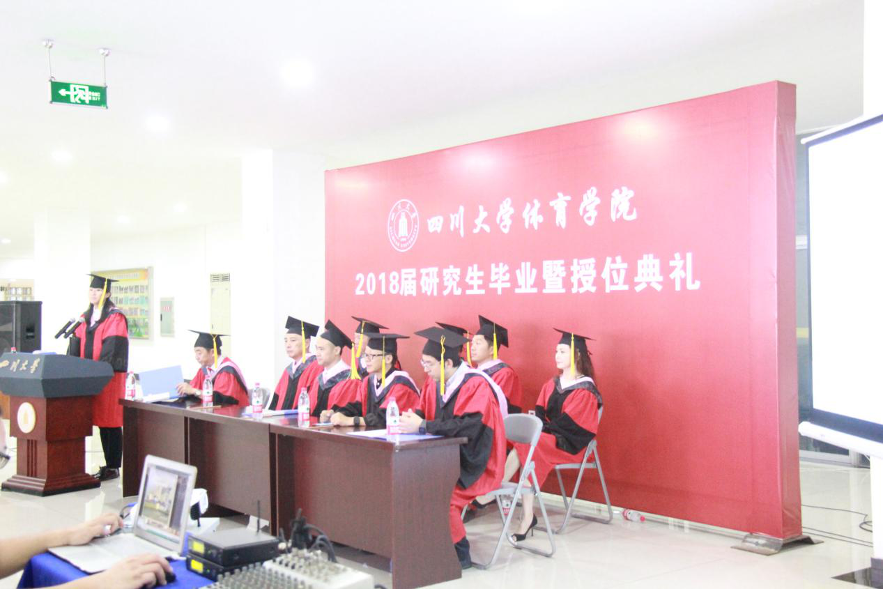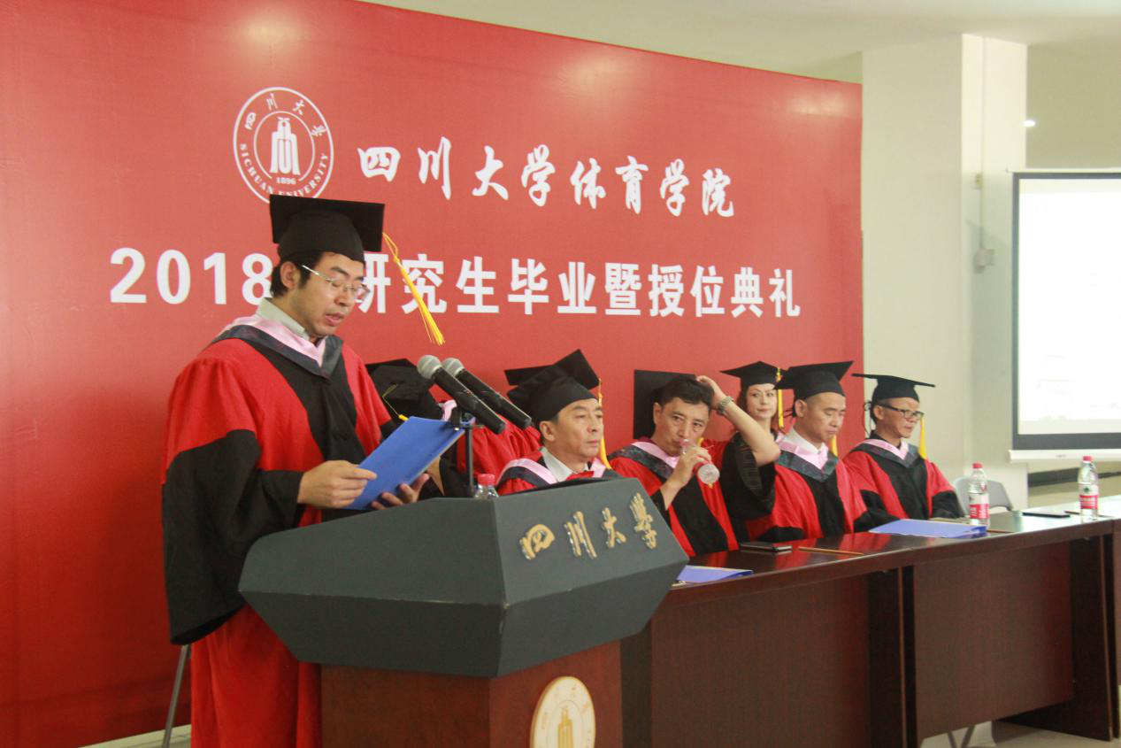 2018年6月26日上午,2018届硕士研究生毕业暨授位典礼在伟德国际victor1946隆重举行。公司党总支书记夏泽友同志、经理向勇教授、正处级组织员荣文学教授、副经理韩海军教授、副经理邱硕立副教授,硕士研究生导师唐成教授、吕志刚教授、张晓波教授、陈清副教授、李姗姗副教授在主席台就坐。教师代表、员工代表及2018届全体毕业生参加了典礼。典礼由体育科学研究所副所长李姗姗主持。