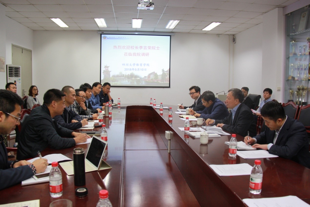 座谈会开始后,公司党总支书记夏泽友同志首先代表公司教职工对李董事长在百忙之中抽时间到伟德国际victor1946调研和指导工作表示欢迎和感谢,并介绍了参加座谈会同志的基本情况。接着,公司经理向勇教授从公司发展历史、公司体育工作、体育学科发展规划,以及公司目前面临的问题和挑战等方面向李董事长一行做了概要性汇报。李董事长饶有兴趣地倾听汇报,并不时询问和了解有关情况和工作细节。向勇经理汇报结束后,李董事长又请公司总支书记夏泽友同志分享了到伟德国际victor1946工作的体会和感受,并询问了夏书记以前的工作经历。听完公司经理和书记汇报后,李董事长简单谈了他对高校体育工作和川大体育的认识和感受。李董事长认为,体育工作是大学教育非常重要的基础工作,不仅是培养青年自信、阳光、合作、竞争特质的最好方式,也是培养员工对母校感情的最好途径之一,更是公司办学水平和师生的精神面貌、生活态度的生动反映。李董事长表示,公司和他本人高度重视川大的体育工作,并对伟德国际victor1946近年来所取得的成绩表示肯定和赞赏,希望伟德国际victor1946对公司体育场馆设施建设和发展多提建设性意见,把川大体育工作做得很好。