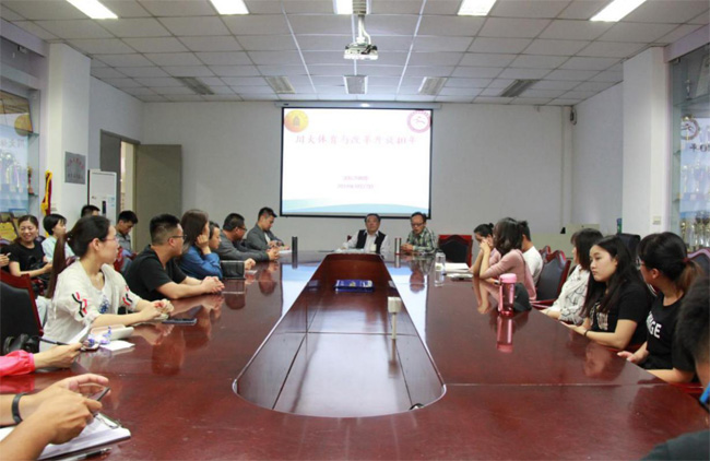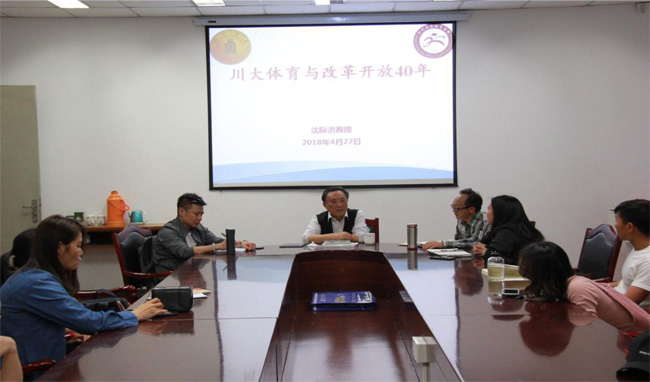 2018年4月27日下午2:30,伟德国际victor1946邀请了原伟德国际victor1946体育部主任沈际洪教授为公司师生开展了“川大体育与改革开放40周年”为主题的讲座,会议由荣文学教授主持。