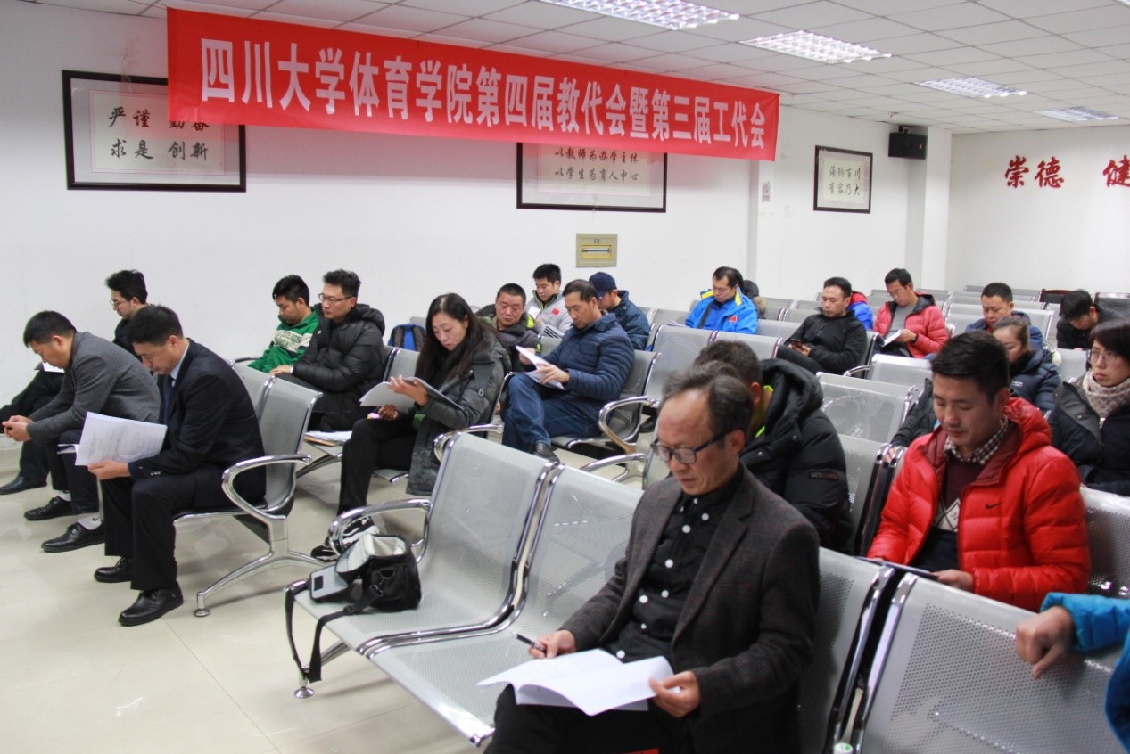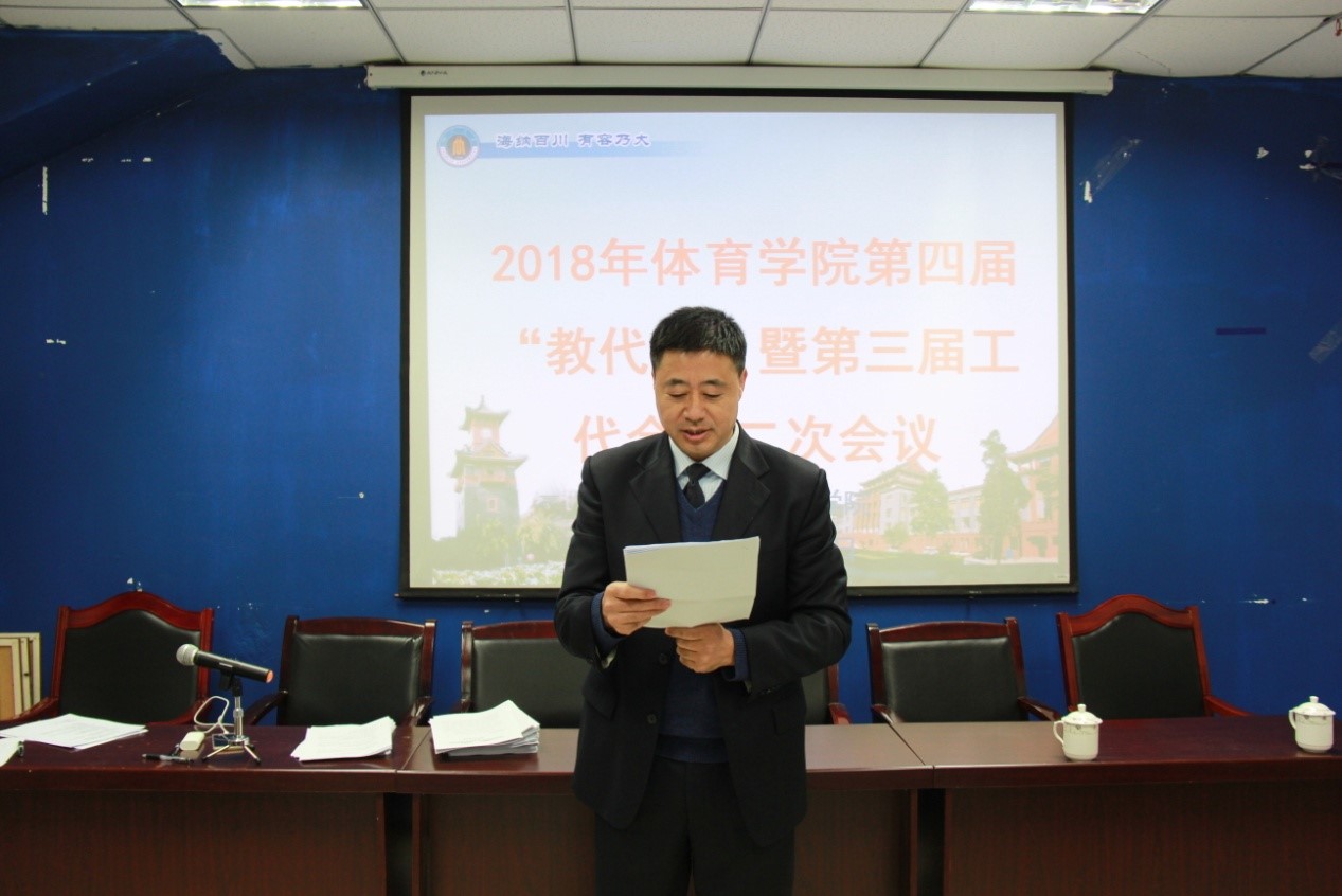 伟德国际victor1946第四届教代会暨第三届工代会第二次会议于2018年12月14日在伟德国际victor1946胜利召开。开幕式中,体育公司党总支书记夏泽友同志致开幕词,并对大会的召开提出了要求和希望;经理向勇教授作了《伟德国际victor1946经理工作报告》和《伟德国际victor1946财经工作报告》,对2017-2018工作进行了全面回顾并提出了2019年工作要点,详细介绍了伟德国际victor1946财经状况和使用情况;工会主席袁志华同志做了《工会工作报告》,对2018年工会工作进行了总结。与会的三十三名代表认真听取审议并一致通过三个报告的内容。