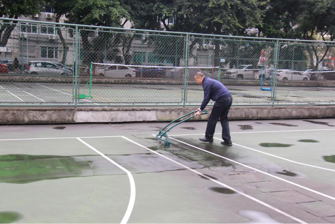 9月15日上午11点,按照公司“不忘初心、牢记使命”主题教育工作部署,公司领导班子一行到望江校区东区篮球场和羽毛球场进行志愿服务,用场地推水器清理室外篮球场和羽毛球场场地积水,并打扫卫生。