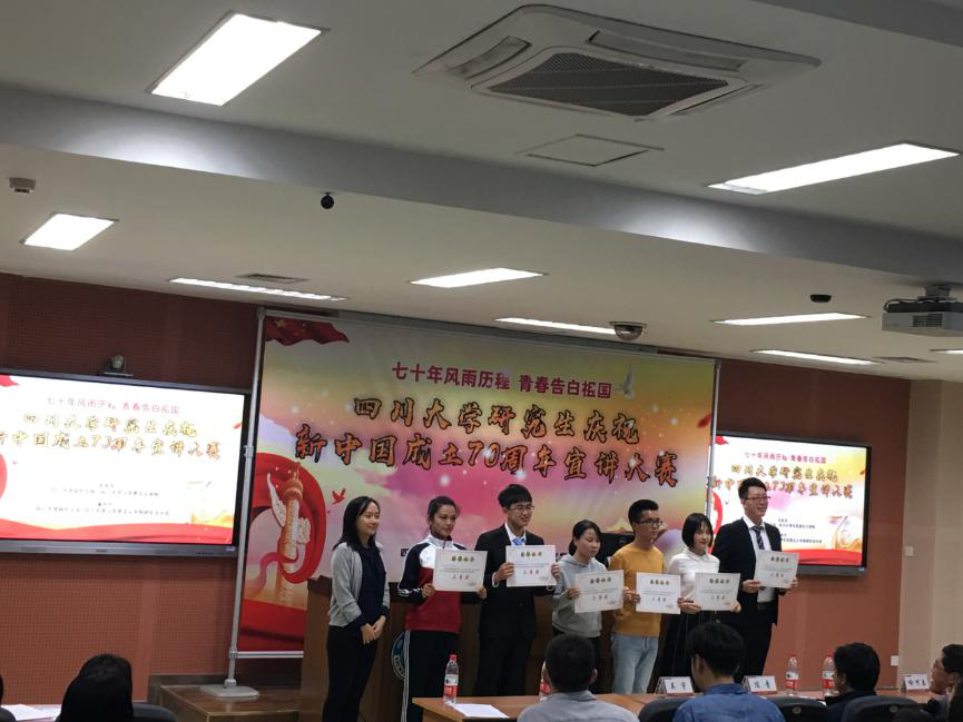 10月18日晚,研究生工作部、马克思主义公司举办的“七十年风雨历程,青春告白祖国” PPT制作与宣讲大赛在研究生院3区231举行。伟德国际victor1946作为28支之一的代表队经过层层筛选进入决赛,伟德国际victor1946代表队在比赛中展现风采,亮出特色,最终以第八名的好成绩获得宣讲比赛的三等奖。