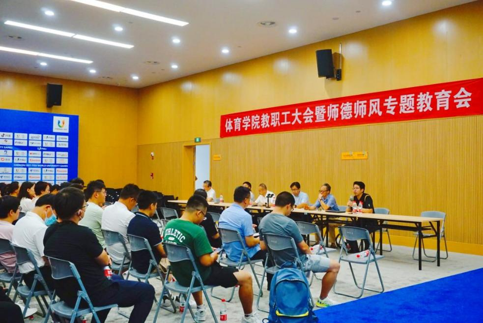 向勇经理以“重要性”“迫切性”“特殊性”三个关键词作总结发言。他再次强调,本次会议精神要传达至每一位教师,号召大家争做有理想信念、道德情操、扎实学识、仁爱之心的四有好老师。此外,在今后的工作中,全体教师应意识到团队建设的迫切性,应主动谋划交叉学科发展,不断提升学科创新能力和人才培养质量。最后,向勇经理号召全体教职员工以最饱满的姿态迎接大运会的胜利召开。