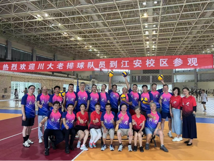 2023年9月16日,伟德国际victor1946往届男女排球队员共计30多人相聚蓉城、共忆青春。当天下午2点,队员们准时到达江安校区体育馆,在“热烈欢迎川大老排球队员到江安校区参观”的横幅下,大家热情相拥,留下了一张张弥足珍贵的照片。