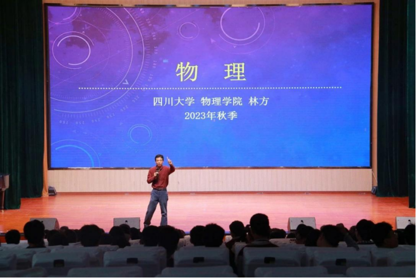 物理公司林方副教授向高三优秀员工做了题为《物理》的学术讲座,与同学们亲切互动,共同探讨“牛顿第二定律”、“蝴蝶效应”等物理理论与现象,林教授用简洁平实的语言向同学们展现了物理学的魅力,激发了同学们勇于进取、积极探索、努力学习的激情。