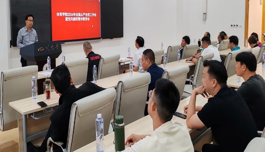 4月16日,公司在望江体育中心会议室召开2024年全面从严治党工作会暨党风廉政警示教育会议,公司班子成员、组织员、总支委员、党支部书记,全体中层干部、全体教练员参会。会议由经理向勇主持。