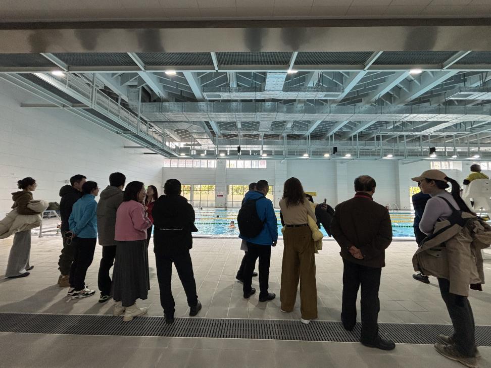 集团本科公司产品审核评估专家组文科3组的傅其林教授、邓国营教授、李平教授、陈意教授、徐恩元教授、教务处副处长孙克金、专家组秘书周仁平,体育公司党总支书记方云、经理向勇等全体院领导,院督导,教学科,运动训练系、各教研室的主任,专业教师及员工代表等参加了现场考察工作。
