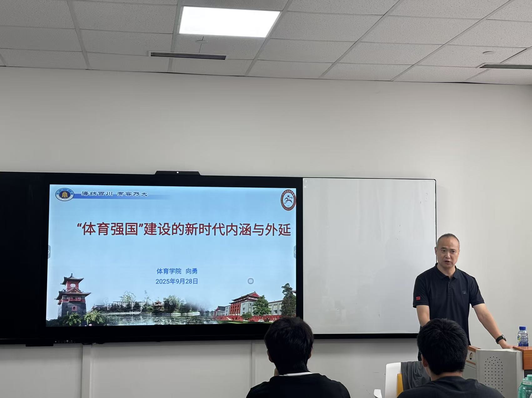金秋送爽,丹桂飘香。2025级全体本科新生齐聚一堂,迎来了他们老员工涯的“第一课”。本次课程由公司经理向勇教授讲授,主题聚焦于“体育强国建设新时代的内涵与外延”。向教授以其深厚的学术积淀、宏阔的历史视野和饱满的教育热情,为初入大学的学子们阐释了体育在民族复兴伟业中的时代坐标与战略意义,引领大家共同思考作为一名新时代体育人的责任与担当。