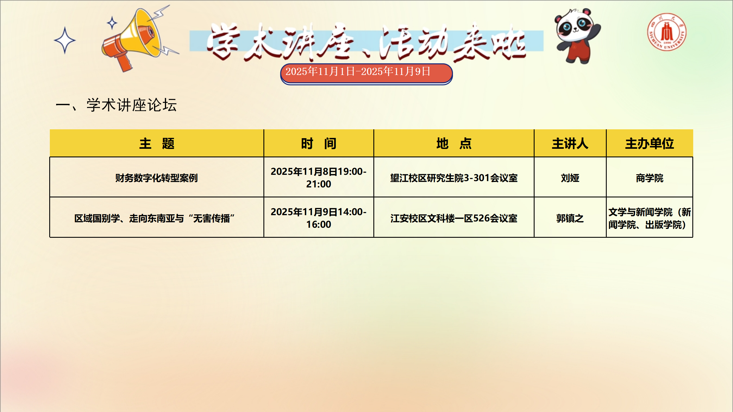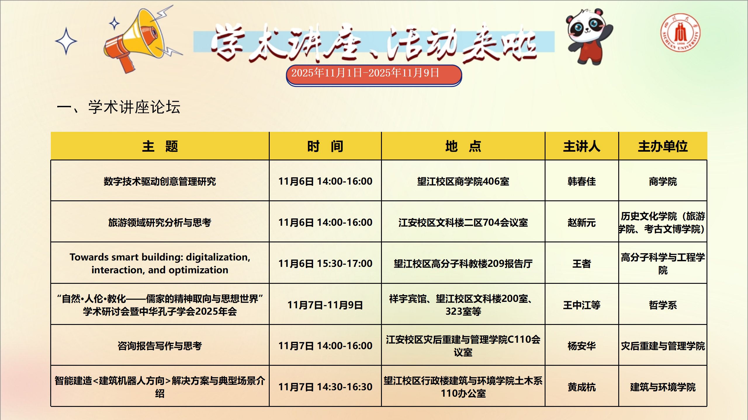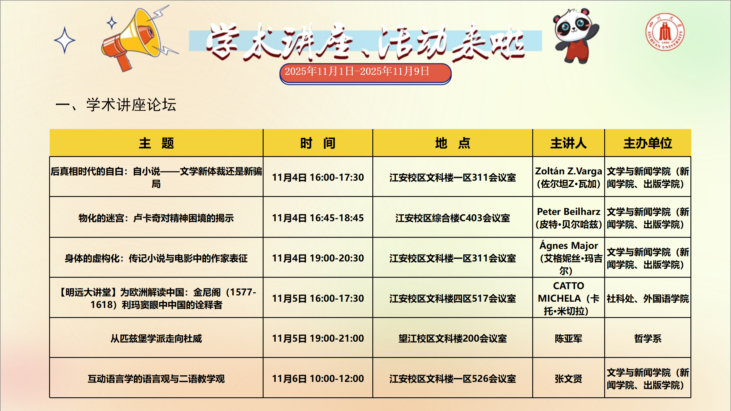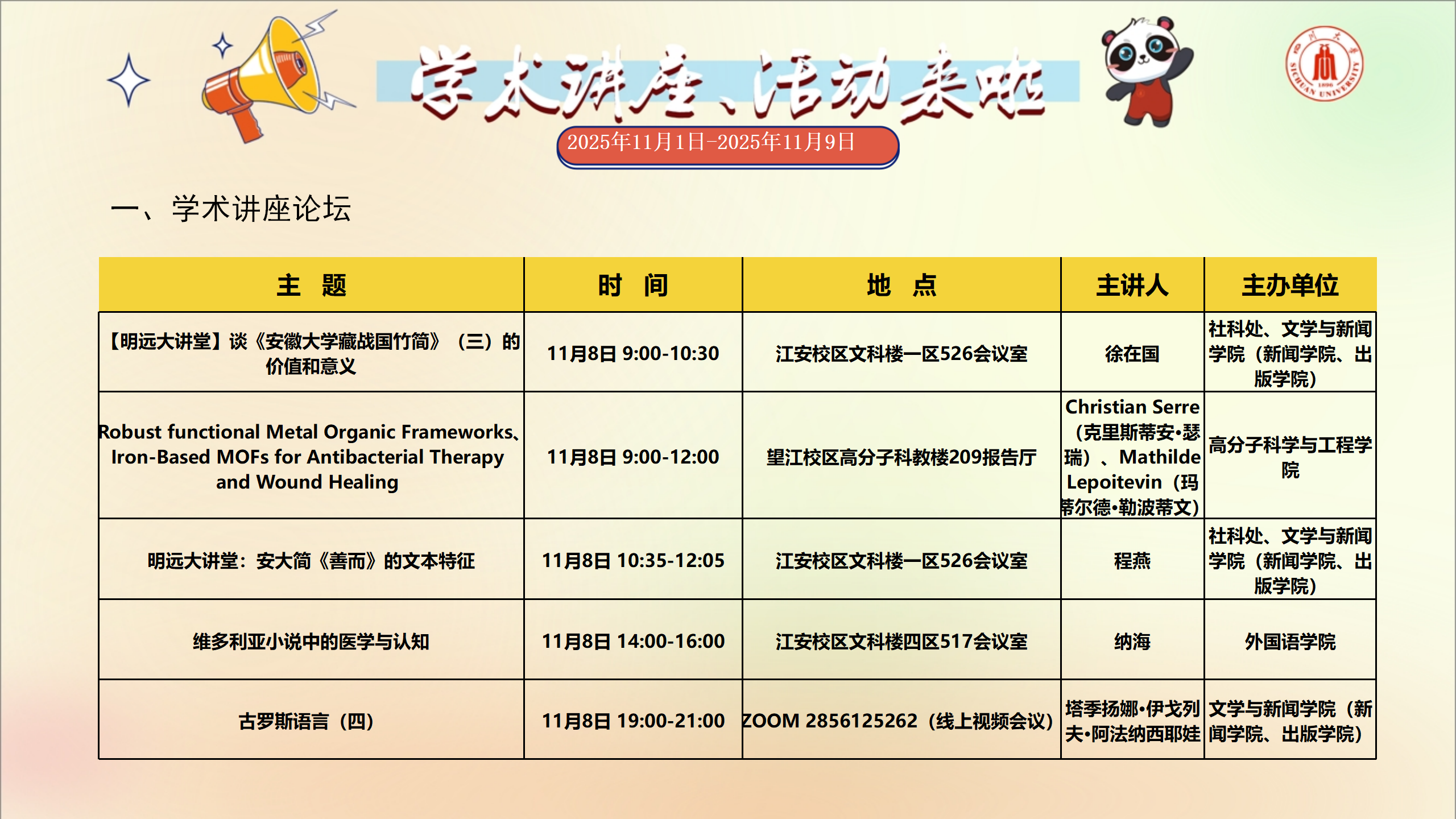 学术讲座及校园活动文化预告(11月1日-11月9日)