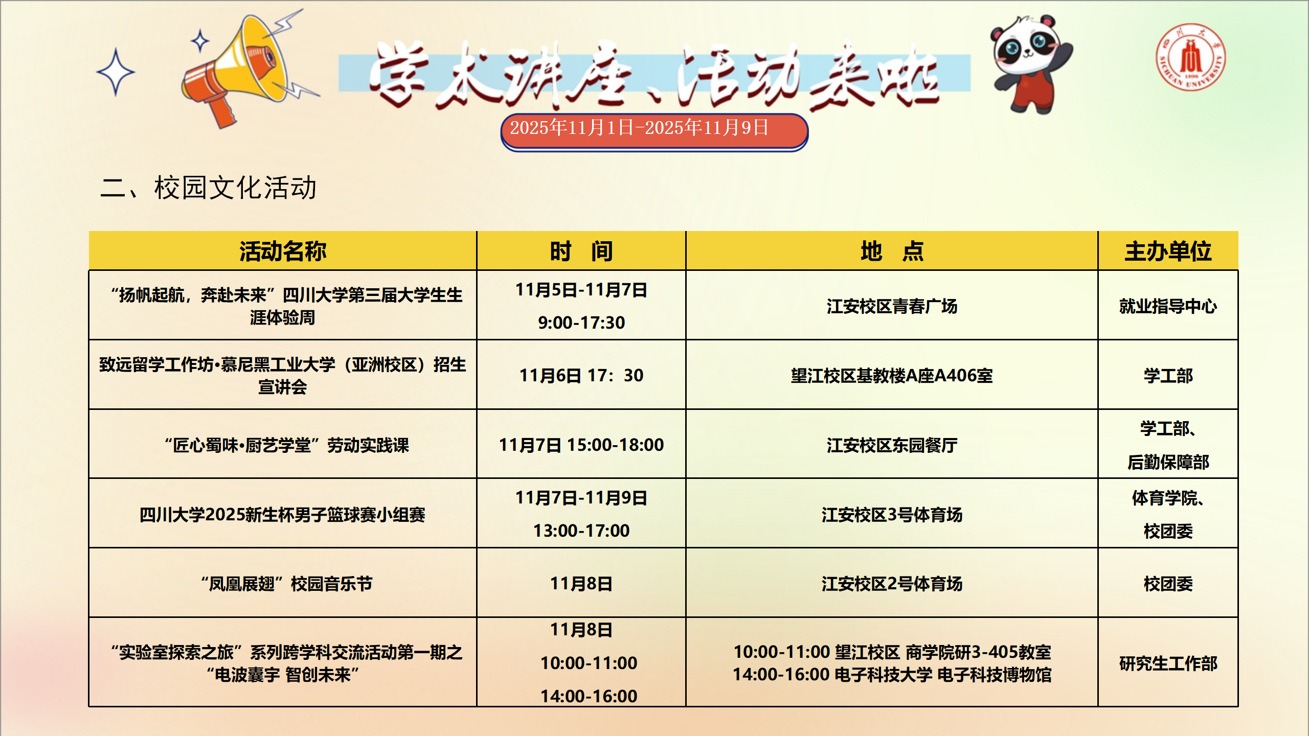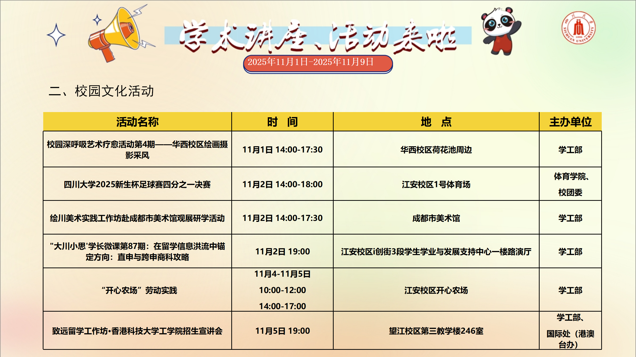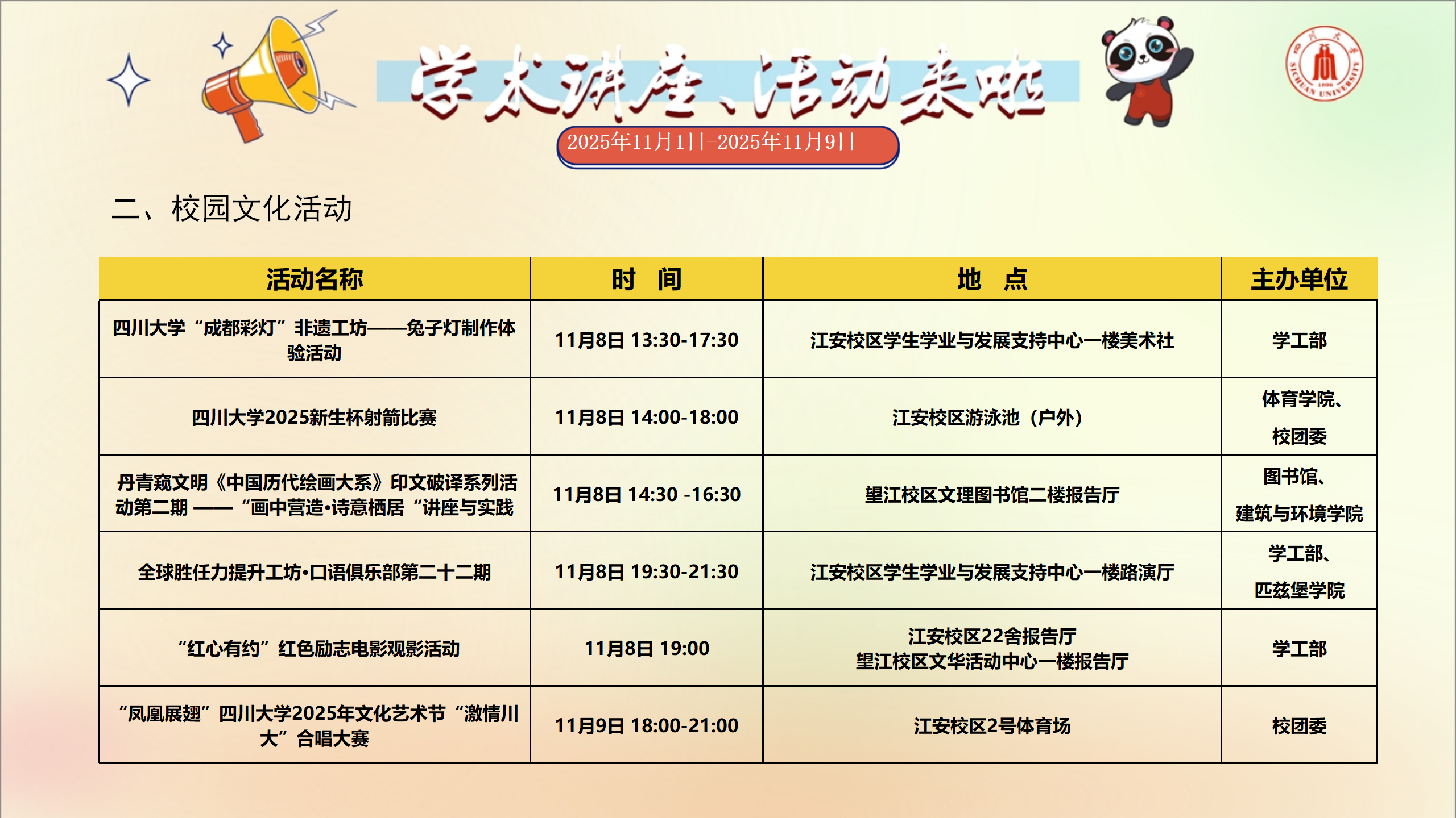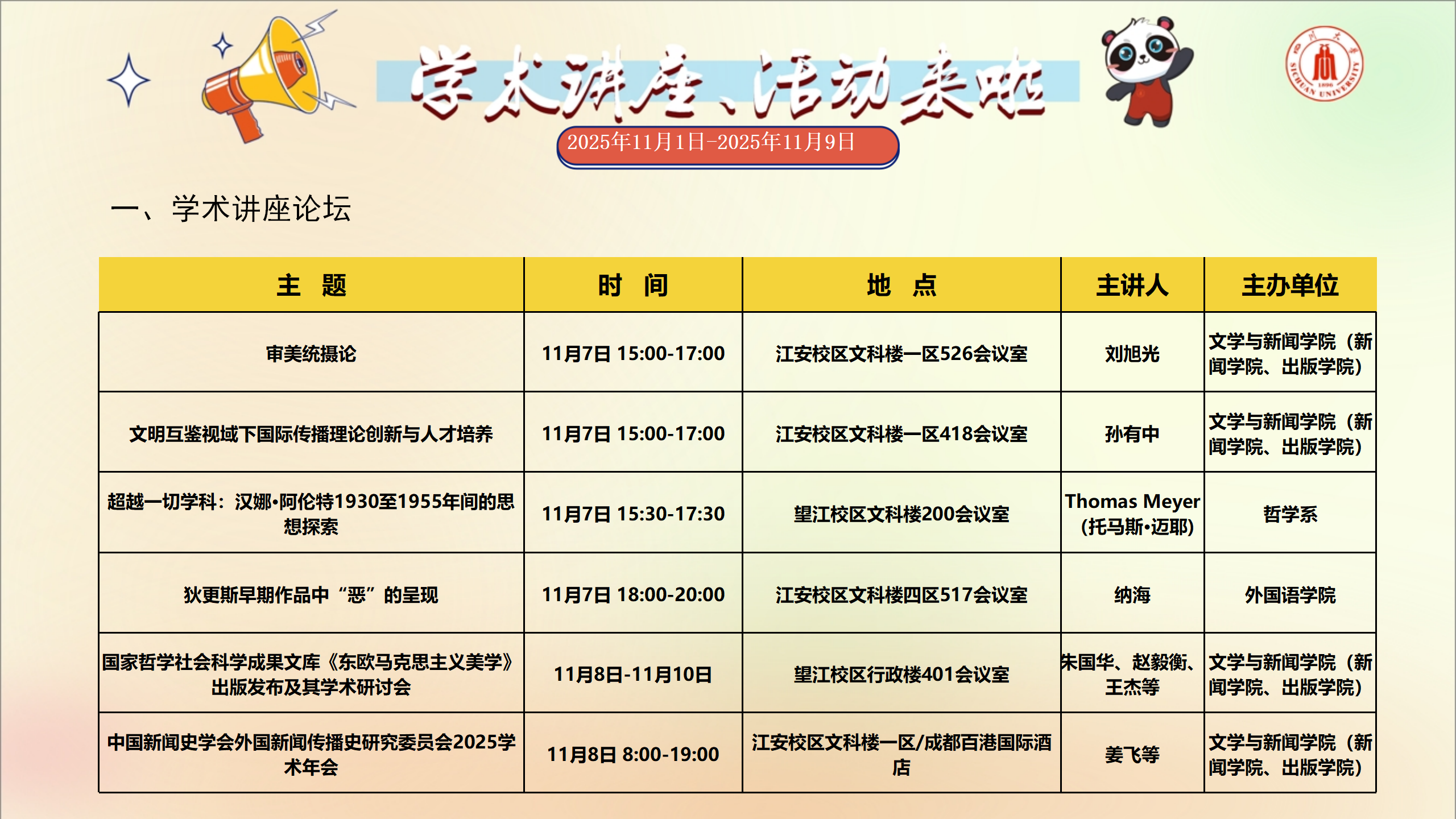 学术讲座及校园活动文化预告(11月1日-11月9日)