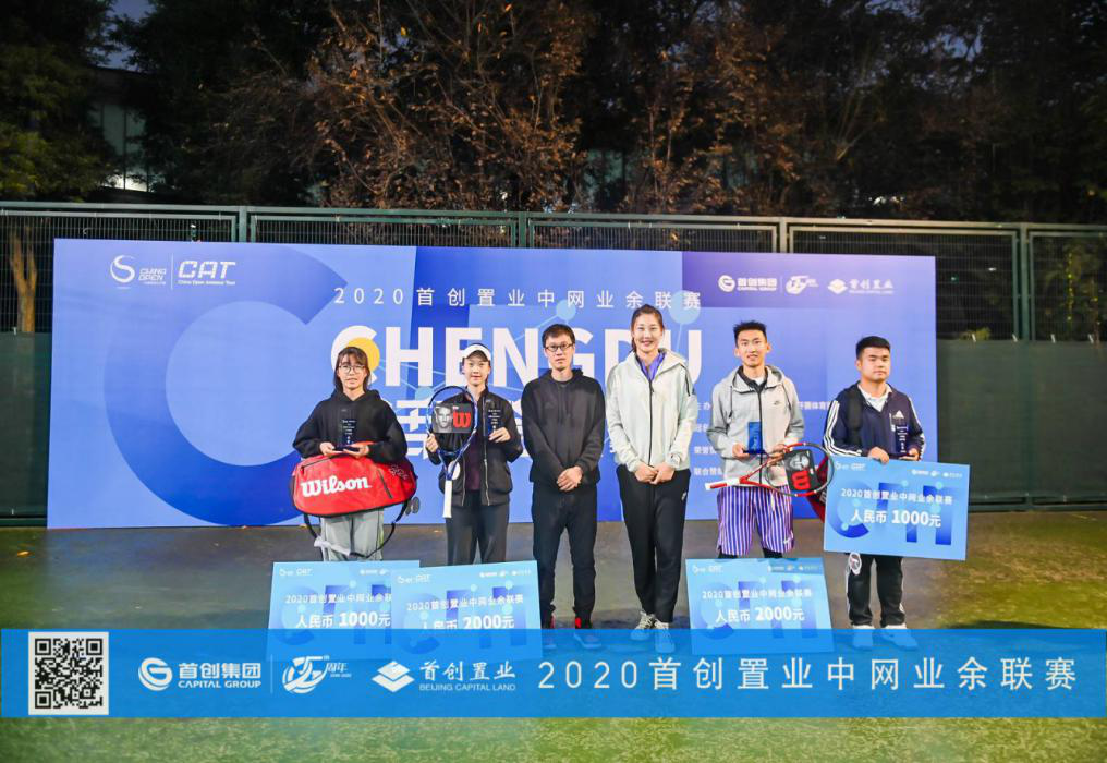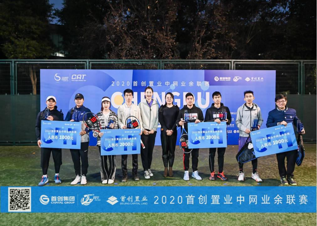 龚德海(右3)、周明昊(右4)2020首创置业中网业余联赛成都站 3.0男双冠军