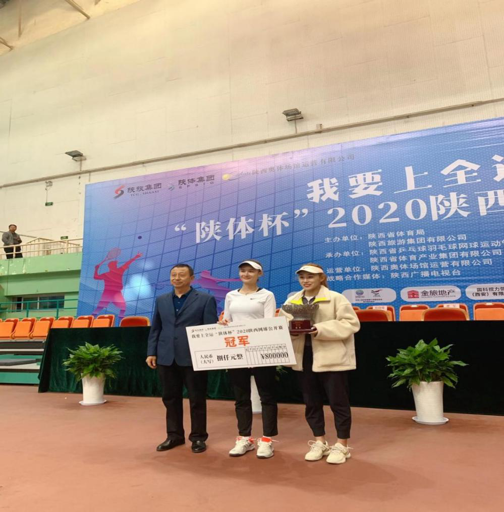 马雨桁(左2) 2020年陕西网球公开赛青年组女子单打冠军
