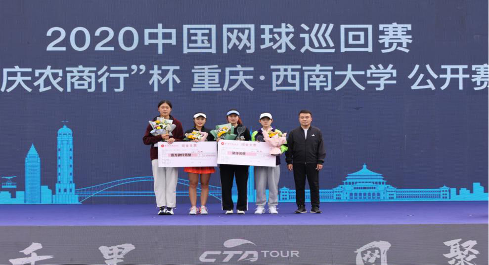 亢 缘(左1)、唐文曦(左2)2020中国网球巡回赛重庆站女子双打冠军