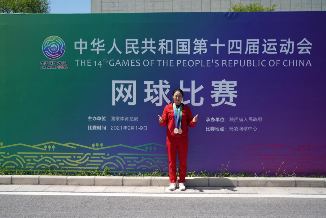 据悉,全国第十四届全运会网球比赛各个单项决赛近日在陕西西安落下帷幕。2021级研究生王雅繁同学代表四川出征全运会,参加了女双和女单两个项目,并斩获一银一铜的好成绩。