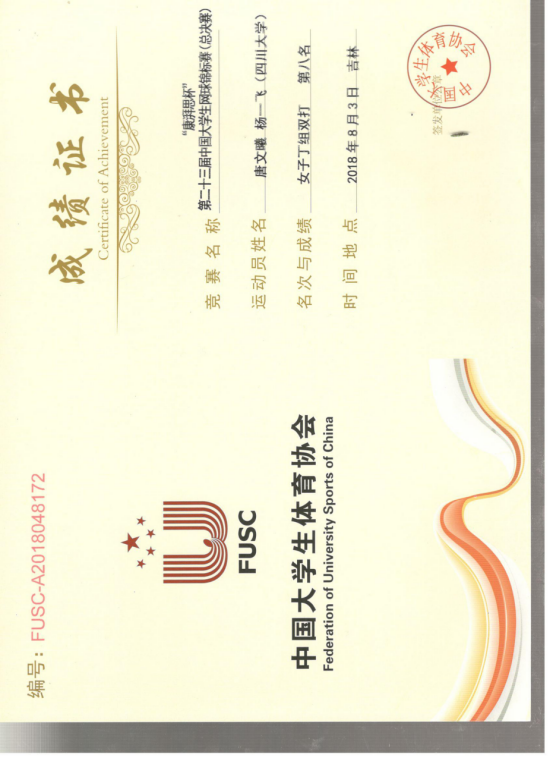 2018年伟德国际victor1946网球高水平运动员竞赛获奖情况