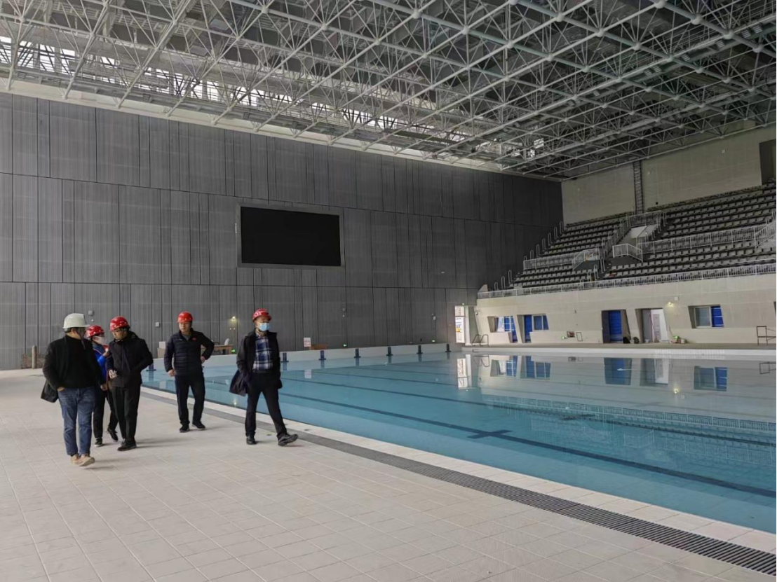 2023年江安未来游泳馆计划面向全校师生开放,并开设《游泳技术与救护》课程。2023年2月27日,体育公司党总支书记方云、经理向勇教授、游泳办公室主任王晓均、教学督导谭月华、教学科科长李伟等一行人实地考察了游泳馆目前建设情况,并根据情况对本学期《游泳技术与救护》课程开放进行相关部署。本学期江安校区《游泳技术与救护》课程计划于13-16周开课,每时段同时开放3个选课单元。