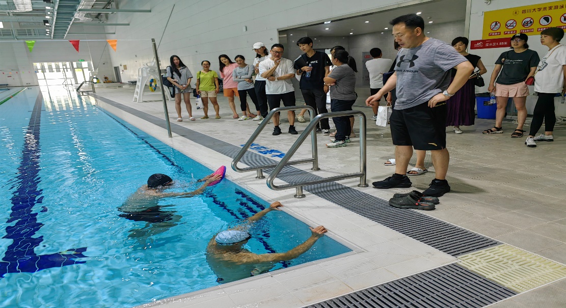 2024年5月24日下午,公司在江安未来游泳馆组织开展第二次“游泳教研”活动。此次活动是在经过一周的游泳课教学实践的基础之上,公司对游泳课教学相关经验以及实地教学指导进行总结。此次活动由韩海军副经理主持,全院教师出席。活动中,游泳管理办公室主任、资深教师王晓均副教授通过一周的教学观察,对游泳课教学时的教学组织、教学教法包括教师站位、动作示范等进行了总结与指导。并专门进行了蛙泳泳姿的正确示范、错误动作示范的视频演示和现场指导。