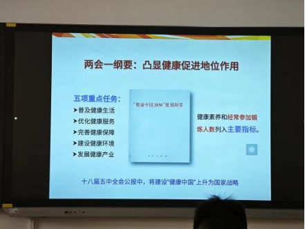 随后,韩海军同志结合自己的工作经历和思考,深入浅出地阐述了体卫融合的内涵和外延。他指出,体卫融合不仅仅是体育和卫生的简单相加,而是要将体育运动和公共卫生两个领域的资源、技术和理念进行深度融合,形成一种全新的健康服务模式。他强调了体卫融合在预防疾病、促进健康、提高生活质量等方面的重要作用,并呼吁伟德国际victor1946员工党员们要积极投身于体卫融合事业中,为推动全民健康事业的发展贡献自己的力量。在阐述体卫融合的重要性和实践路径时,韩海军同志进一步将这一议题与中国梦相联系。他强调,中国梦是全体中国人民的共同梦想,其中包括了人民对美好生活的向往和对健康的追求。体卫融合的体系构建正是实现这一梦想的具体行动之一。通过整合体育和卫生资源,创新健康服务模式,我们不仅能够提升国民的健康水平和生活质量,还能够为社会的和谐稳定和持续发展奠定坚实基础。