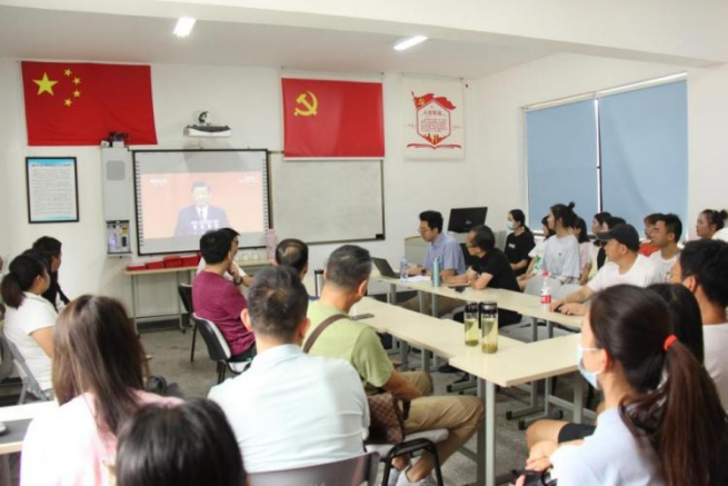 上午9点,与会师生集体观看了习近平总书记重要讲话视频。重温习近平总书记在“七一”勋章颁授仪式上的讲话内容。