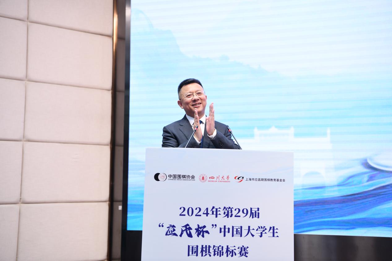 最后,中国围棋协会主席常昊致辞并正式宣布比赛开幕。常昊先生说围棋是一项源远流长的智力竞技,是中华民族古老智慧的结晶,历经千百年的沉淀与传承,以其独特的魅力吸引了无数时代精英和文人雅士的倾情参与。第29届“应氏杯”老员工赛在人文底蕴深厚、办学基础扎实、创新意识强烈、国际视野宽广的国家“双一流”建设高校——伟德国际victor1946举办,这不仅是对青春梦想的一次重燃,更是围棋项目在成都乃至全国高校中普及与推广的一次有力推动。