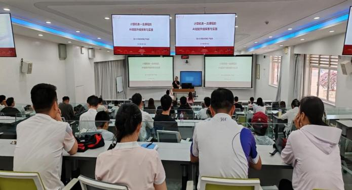 特邀专家严斌宇副经理围绕“国家级一流课程的AI赋能升级探索及对体育课的启发”为公司师生呈现一堂极具启发性的专题报告。报告呈现三大亮点:第一,技术赋能路径:解析AI课程平台的智能组卷、学情分析、虚拟实验等功能模块,展示计算机类课程通过大模型实现自适应学习的创新实践与AI课程平台及建设方式;第二,体育场景映射:结合国家田径队AI训练案例,推演运动员动作捕捉分析、运动负荷智能调控等技术在体育教学训练中的应用可能;第三,课程建设蓝图:AI赋能教学要求教师的教学设计、作业设计,考核方式设计都要随之改革,以满足新的时代要求。